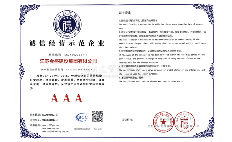 • 2007年江蘇省質量信得過安全穩定施工企業